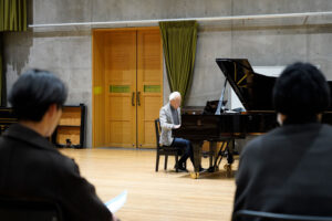 12月14日(日)のオープンキャンパスでのコースイベントで、13:30よりシルバーマウンテン地下1階にて『佐藤昌弘ピアノ・ミニリサイタルVol.5』を開催しました。“Senzoku“ の頭文字にちなみ、“S“の付く作曲家(Schumann、Scriabin 等)、曲名(”Someone to Watch over Me“ 等) をテーマに、佐藤昌弘アカデミックプロデューサーがトークを交えながらピアノ演奏を参加者の皆さんにお届けしました。