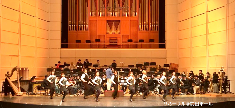 12/17(水)『サクソフォーンオーケストラ創立30周年記念・後期演奏会 (@前田ホール)』の「リバーダンス」振付:三寺郷美(本学講師)にダンスコースより9名出演しました。
