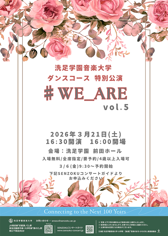 3/6(金)9:30〜 SENZOKUコンサートガイドよりご予約ください。
