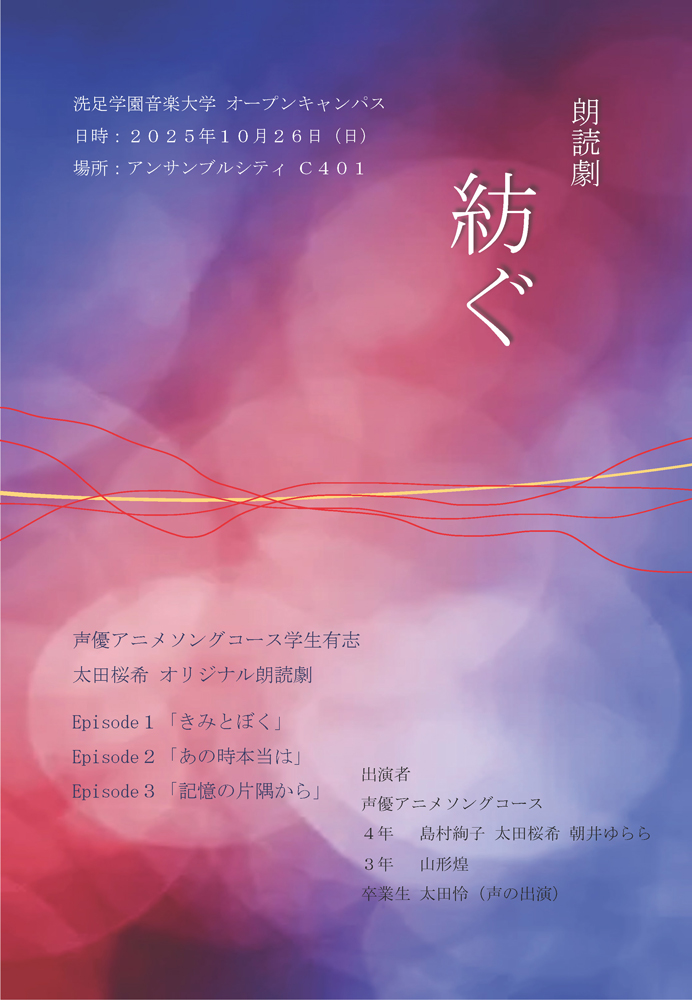 ●鈴木結女先生によるアニソン体験授業 ●朗読劇「紡ぐ」鑑賞 |