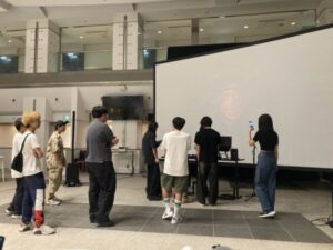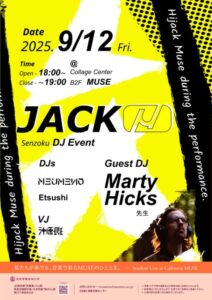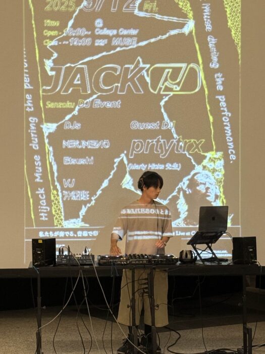 音楽音響デザインコースの市瀬ゼミ 沖原班とゲストのMarty Hicks 先生によるDJパフォーマンスを披露しました。「MUSEをパフォーマンスでハイジャックする」をコンセプトしたDJイベントでした。