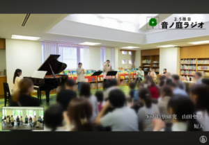 企画名の「2.5限目 音ノ庭ラジオ」は、2限と3限の間のお昼休みを2.5限目とし、大学の中心にある中庭The Lawnの音楽堂から様々な音楽をお届けするラジオ、という意味で学生達が命名しました。