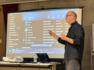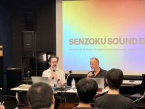 9月29日(月)音楽・音響デザインコースでは、特別講座「北欧ジャズとライブエレクトロニクス ― 新たな音楽表現の探究」を開催し、バルケ先生の作品紹介や創作電子楽器「Spektrafon」の仕組みや奏法を解説していただきました。