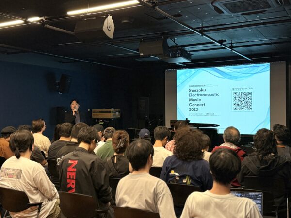 10月1日(水)先端音楽表現研究所のコンサート「Senzoku Electroacoustic Music Concert 2025」が開催され、創作電子楽器「Spektrafon」を使ったバルケ先生のピアノ演奏と、音楽・音響デザインコース学生の新作3作品が披露されました。