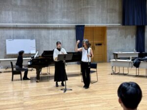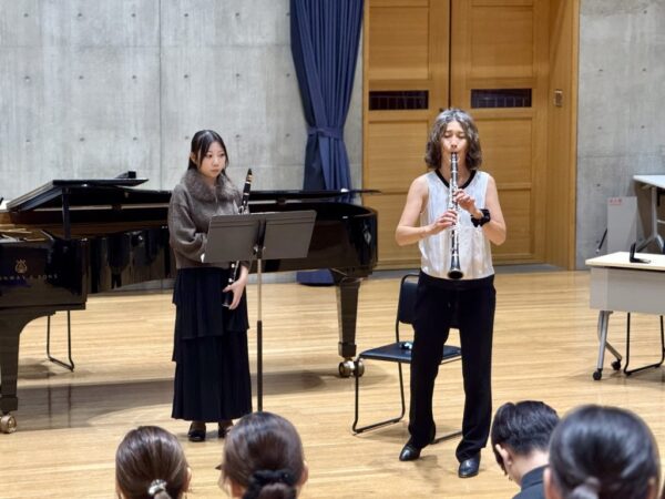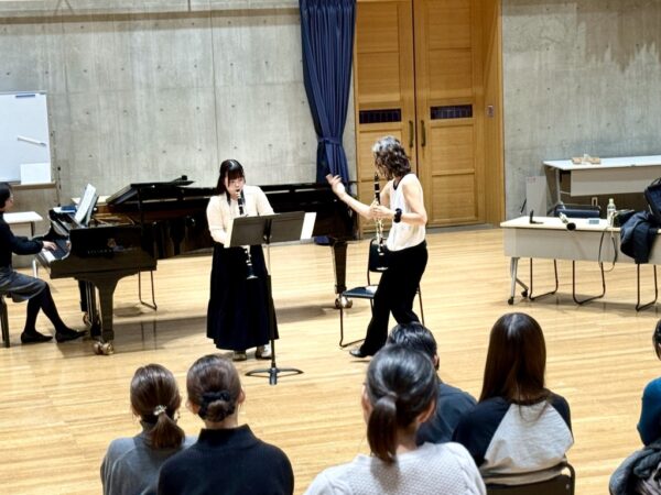 クラリネット専攻の8名がレッスン室でマスタークラスを受講し、4名はシルバーマウンテンにて公開レッスンを受講しました。また、公開レッスンの最後には、ミニコンサートで吉村直子先生の素晴らしい演奏を披露していただきました。受講した学生は個々に表現力を向上するためのアドバイスをいただき、クラリネット演奏の表現力向上の多くのヒントを得ることができました。今回のマスタークラスでは、鈴木由紀子先生に伴奏をしていただきました。