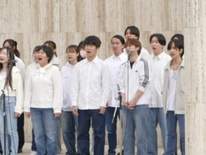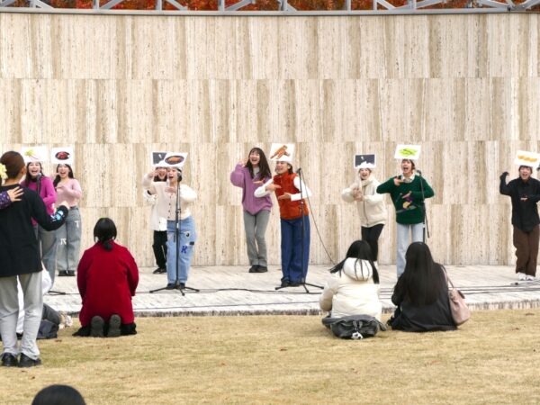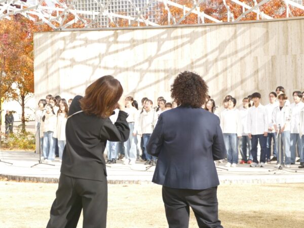 11月19日(水)の昼休みに、The Lawn音楽堂にて「門倉&山田ゼミ The Lawn Terrace Concert」を開催しました。今回の洗足学園音楽大学の門倉ゼミと洗足こども短期大学の山田ゼミによる合同コンサートでは、披露された素晴らしい合唱に、集まった学生や教職員から大きな拍手が送られました。