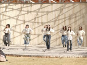 門倉ゼミは、学内の様々なコースのメンバーが参加して振り付け、アレンジ、楽器演奏など、お互いアイディアを出し合い、アートマネージメントスキルの習得を目指したポップスコーラスの自主コンサート開催を行っています。地域連携コンサートやアーティストとの共演、動画の公開など、多彩な活動を通じてポップスコーラスの準備から開催までのノウハウを学んでいます。