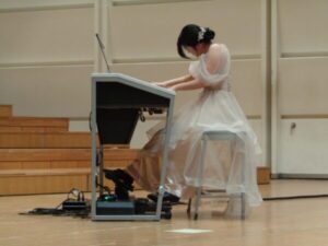 第一部で演奏したピアノ協奏曲は複雑なリズムや鋭いエネルギーが続く曲で、取り組む中で変拍子のリズム感や勢いのコントロール等、多くの技術的な課題に向き合う事が出来ました。前田ホールでの演奏は初めてで広い空間特有の響きのつかみにくさに戸惑った部分もあり、自分の音がどう客席に届くかを意識する重要さを改めて感じました。 こうした舞台に挑戦する機会をいただけたことに感謝し、本番で感じた課題や気づきを今後の演奏にしっかり活かしていきたいと思いました。 (山村 一葉) |