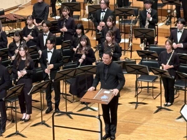 フレッシュマン・ウインド・アンサンブル後期演奏会は多くのお客様に足を運んでいただき、たくさんの拍手に支えられ終了することができました。ご来場いただいた皆様ありがとうございました。 4月に授業が始まって以来、課題曲クリニック、前期演奏会そして後期演奏会とたくさんの本番を重ねてまいりました。初めは緊張や心配で探り探りでしたが、授業を重ねるごとに気合の入ったサウンドが出てきました。 後期演奏会ではビョルン・バス先生をお招きし、リハーサルを通して各々が音楽家として活躍していくためのアドバイスをたくさんご教授いただきました。その他にも普段の授業から多くの先生方に支えていただき各々が大きく成長することができました。この一年間、関わってくださった全ての先生方そして仲間達に感謝申し上げます。これからもどうぞ応援よろしくお願いいたします。 コンサートマスター |