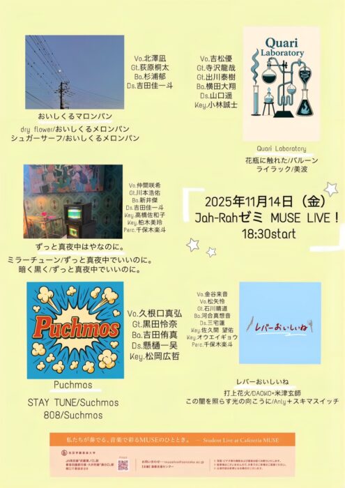 2025年度のStudent Live at Cafeteria MUSE 第26回を11月14日(金)に開催しました。