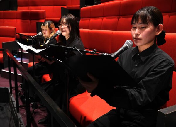 バレエに生で声をあてるというのは想像以上に難しく、試行錯誤の連続でした。しかし、稽古の中でバレエコースの皆さんの踊りやお芝居に刺激を受け、台本を修正したり、セリフを話し始めるタイミングを調整したりして、より良いものにしていくことができました。