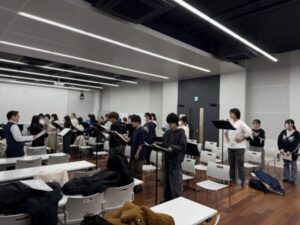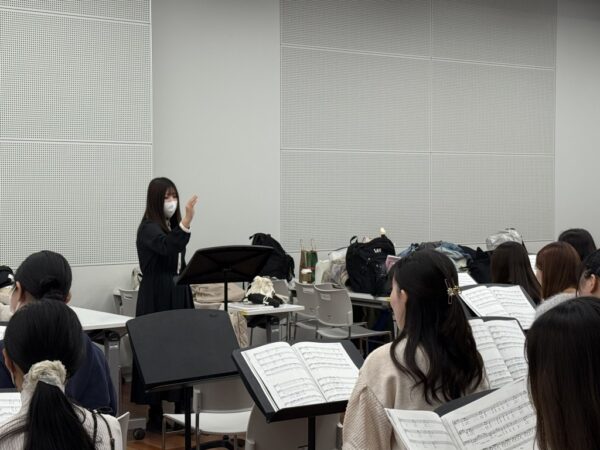 毎年12月に開催される定期演奏会は、合唱以外にも能や器楽合奏と盛りだくさんな演目になっており、自分たちが主体になって企画・運営を行う音楽教育コースならではの演奏会です。その本番では、合唱の楽しさ、良さが伝わるように歌うことが出来たらいいなと思っています。