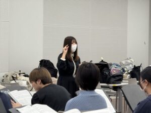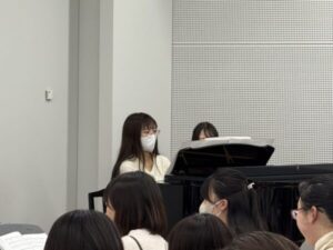 授業を受けるにあたり事前準備として、楽曲について理解するために必ず楽譜をよく見ておくということを意識しています。また、この授業は学生が前に立って合唱の指揮や指導を積極的に行う授業なので、他の人がやっているときも自分だったらどのように指導するか常に考えるようにしています。