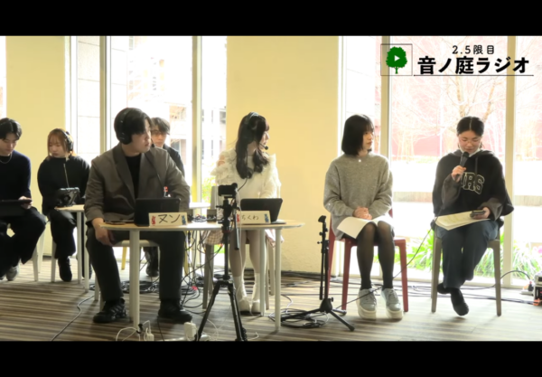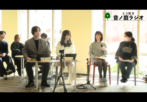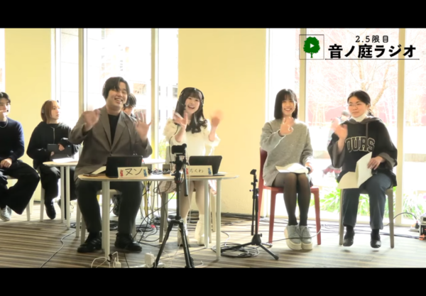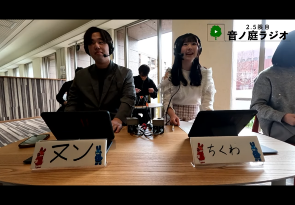 企画名の「2.5限目 音ノ庭ラジオ」は、2限と3限の間のお昼休みを2.5限目とし、大学の中心にある中庭The Lawnの音楽堂から様々な音楽をお届けするラジオ、という意味で学生達が命名しました。