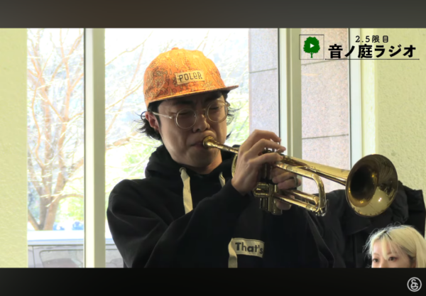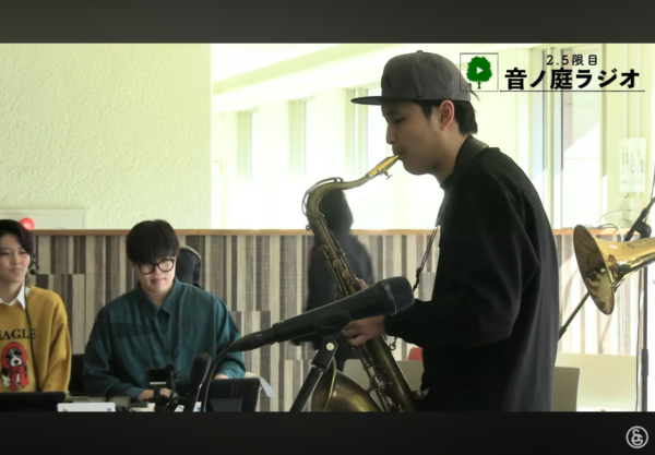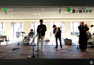 2月9日(月)の昼休み、キッズスクウェア1Fロビーから、音楽大学公開ラジオ『2.5限目 音ノ庭ラジオ#42』をライブ配信しました。ゲストにジャズ&アメリカンミュージックコースの鈴木 颯士さん、西野 右善さん、坂井 晴さん、大石 遥士さんをお迎えして、ジャズ&アメリカンミュージックコースについてのお話やジャズの演奏をお送りしました。4人のお話と演奏はぜひアーカイブからご視聴ください