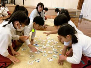 読み手の声に耳を澄まし、札をじっと見つめる子どもたちの表情はとても真剣で、「少しでも多く取りたい」という思いが伝わってきました。