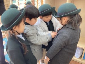 年少組 最近、お手伝いをしたい!という気持ちが芽生えた子どもたち。手伝った子も手伝ってもらった 子も嬉しい気持ちを味わっています。