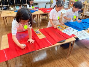 年長組はお遊戯で使うはっぴを自分でデザインしました!