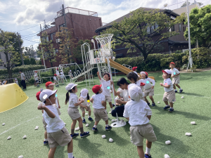 年中組 運動会後、年少組を誘って一緒に玉入れを楽しんでいます。