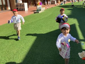 年少組 自分で作った玩具を使って、楽しんで遊んでいます。